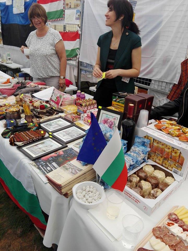 На щанда на България участниците в събитието имаха възможността да опитат приготвен от нашата делегация боб, катък с чушки и разнообразни колбаси, сирена, кашкавали, халва и мед на местни фирми. Посетителите останаха пленени от вкуса на продуктите на фирмите „Нолев“, „Саяна“, „Дюсена“, „Хъни Трейд 2012“, а българската роза в асортимента на стоките от фирма „Ния Милва“ и тази година бе предпочитана от чужденците.